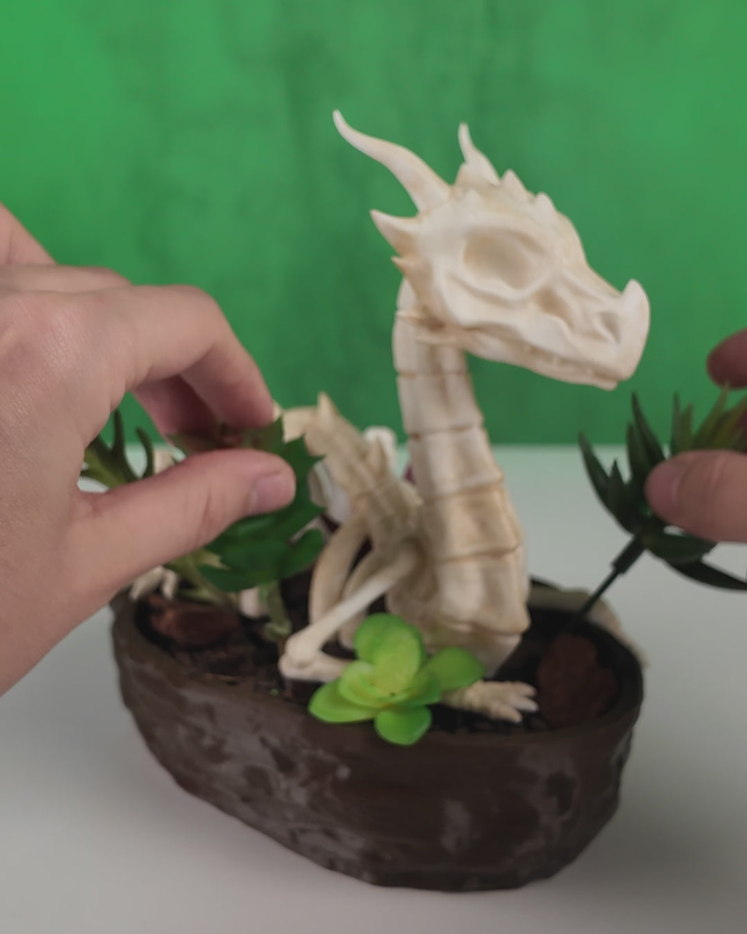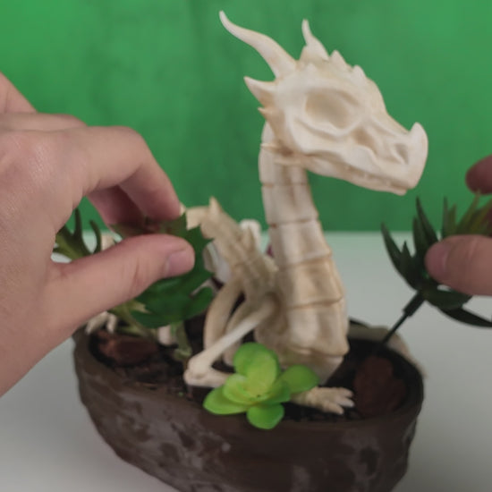 Bring a touch of fantasy to your space with the Verdant Remains Planter. This eco-friendly 3D printed piece features a detailed dragon skeleton entwined around a rocky base, creating a captivating home for succulents, air plants, or moss. Lightweight yet durable, it blends gothic charm with natural beauty, making it perfect for fantasy enthusiasts and unique decor lovers alike. Elevate your plant display or gift it to a dragon fan to inspire their own mythical realm.